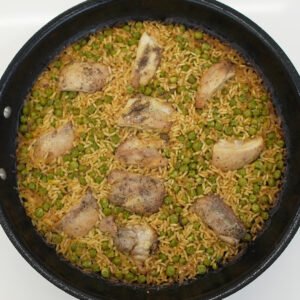 Por otro lado, el arroz se cocina en la misma sartén, absorbiendo los jugos del pollo y las especias, lo que le da un sabor profundo y rico. Esta técnica también ahorra tiempo y reduce la cantidad de utensilios que tienes que limpiar después. Además, al incorporar las arvejas al final de la cocción, se mantienen crujientes y llenas de sabor, aportando un toque de color y frescura al plato.