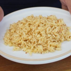 - A la mitad del tiempo de cocción, revisa el arroz y revuélvelo con un tenedor. El arroz debe quedar seco y suelto.