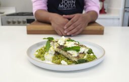 Video para aprender a cocinar Arroz con espinaca y cilantro, servido con coliflor asada y aderezo de yogur