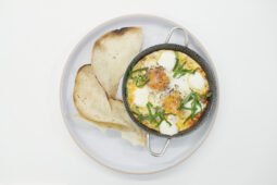 La cacerola de huevos con tomate y chorizo se sirve mejor directamente de la cacerola, acompañada de un buen pan crujiente para mojar en la salsa y las yemas de huevo. También puedes añadir unas rodajas de aguacate fresco o una ensalada ligera al lado para equilibrar los sabores y añadir un toque de frescura.