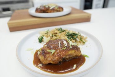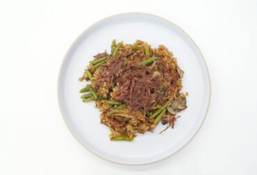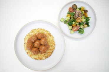Aprende a cocinar este de menú en casa, es una receta fácil, rápida y deliciosa. Arroz con lentejas y cebolla caramelizada, servido con ensalada de tomates, aceitunas y queso feta.
