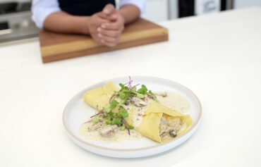 Los Crepes de pollo con salsa de mostaza antigua, cebolla y champiñones, son una deliciosa opción para que compartas y sorprendas a los demás en el almuerzo.