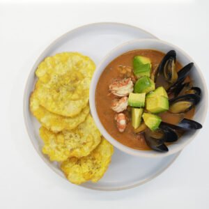 - Sirve la cazuela de mariscos asegurándote de distribuir los mejillones y el aguacate en cada porción. Sirve acompañado de arroz blanco o patacones.