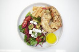 Para completar el plato, una ensalada de aguacate y queso feta aporta un contraste refrescante y ácido que equilibra la riqueza de la langosta y la yuca frita. El aguacate, conocido por su textura cremosa y sabor suave, se mezcla con el queso feta, que añade un toque salado y ácido. Esta combinación no solo aporta una textura diversa, sino que también añade profundidad de sabor al plato.