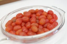 • En postres: Los tomates cherry pelados también se pueden utilizar en postres, como tartas, helados o sorbetes. Su sabor dulce y ácido los hace un ingrediente ideal para este tipo de recetas.