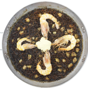 La Fideuá es un plato muy popular en la gastronomía española y es uno de los mejores ejemplos de cambiar la receta, pues se trata de una variación de la tradicional paella; es muy versátil y fácil de preparar. En esta oportunidad la prepararemos con tinta de calamar y langostinos.
