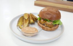 Hamburguesa de carne de res con cascos de papa al horno – Chef John Motta
