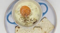 - Retira los ramequines del horno con cuidado y sécalos si es necesario antes de servir. Sirve los huevos cocotte calientes, acompañados de pan tostado o galletas.