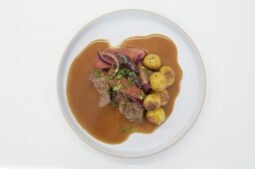 - 600 gramos Filete de res cortado en cubos parejos de 3 cm x 3 cm aproximadamente