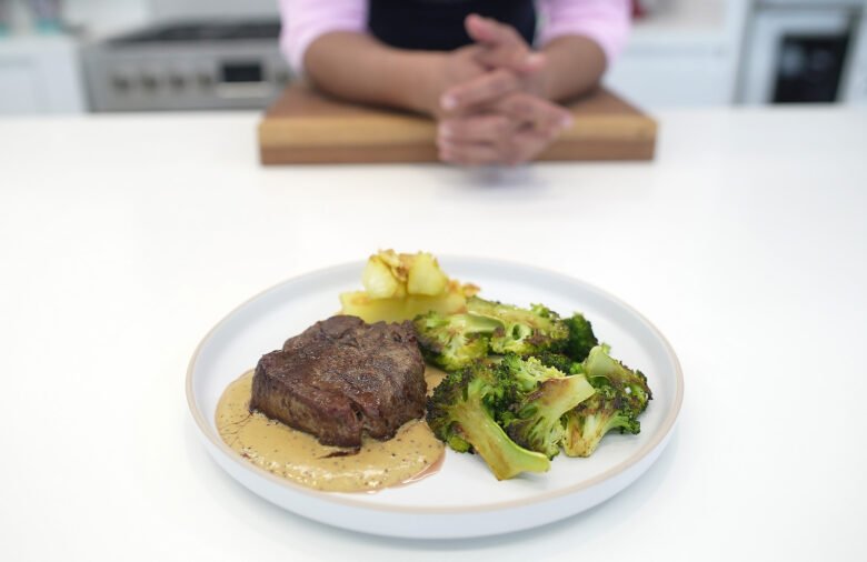 Esta es una receta deliciosa muy fácil y rápida de cocinar. Aprende a hacer en casa mi versión de Lomito (solomillo) de res con salsa de mostaza antigua, servido con yuca y brócoli asado.