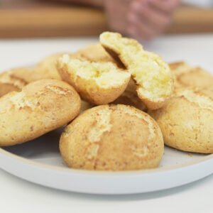 - Hornear durante 20-25 minutos, o hasta que los pandebonos estén dorados y crujientes por fuera.Retirar del horno, dejar enfriar unos minutos y servir tibios.