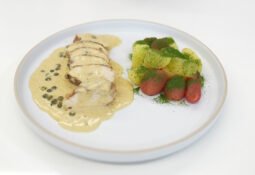Pechuga de pollo con salsa de limón, alcaparras y mantequilla