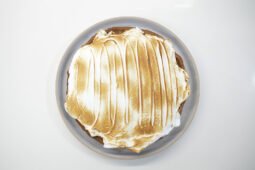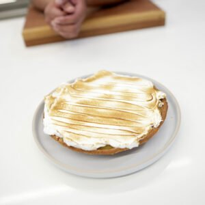 - Con la ayuda de una manga pastelera o con una espátula, decora el pie de limón con el merengue. Al momento de servir y con la ayuda de un soplete, quemas ligeramente el merengue.