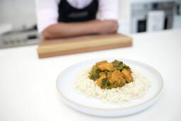 Pollo al curry con leche de coco, espinacas y arroz con limonaria – Chef John Motta