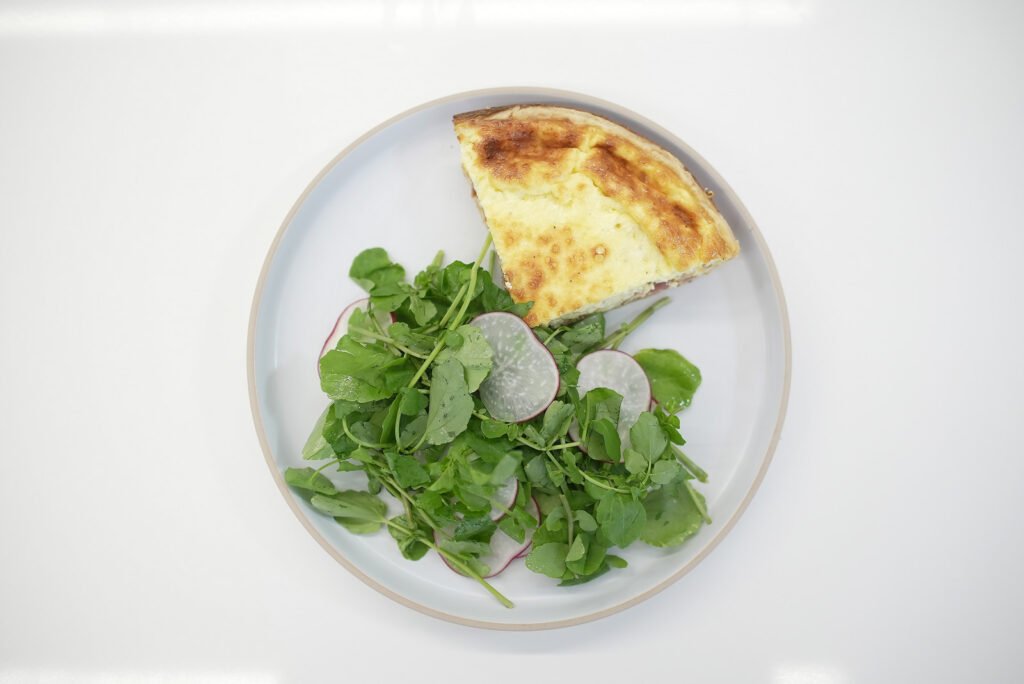 Aprende a cocinar una opción deliciosa para diferentes momentos del día, desde un rico desayuno, hasta una cena ligera, Quiche Lorraine con ensalada de rábano y berros.