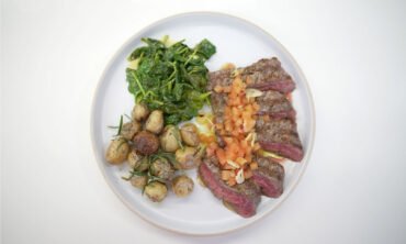 Hamburguesa de carne de res con cascos de papa al horno
