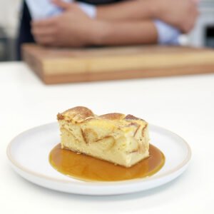 Al integrar la panela en el almíbar de esta torta, se honra su lugar en la cocina colombiana y se le da un protagonismo merecido. Además, el sabor terroso y auténtico de la panela aporta una complejidad que resalta los ingredientes de la torta, haciendo que este postre sea mucho más que una simple reinterpretación de las almojábanas.