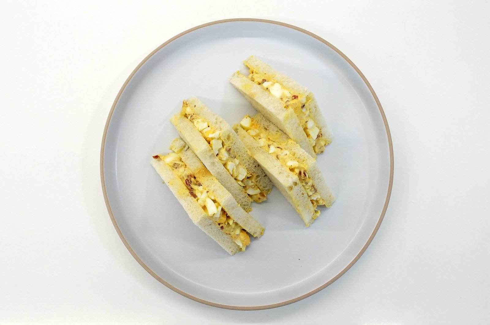 Sandwich (Emparedado) con ensalada de huevo y tocineta crocante